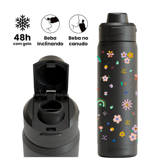 Garrafa Térmica Flip Pro + Ebook - Princesas - Princess Garden