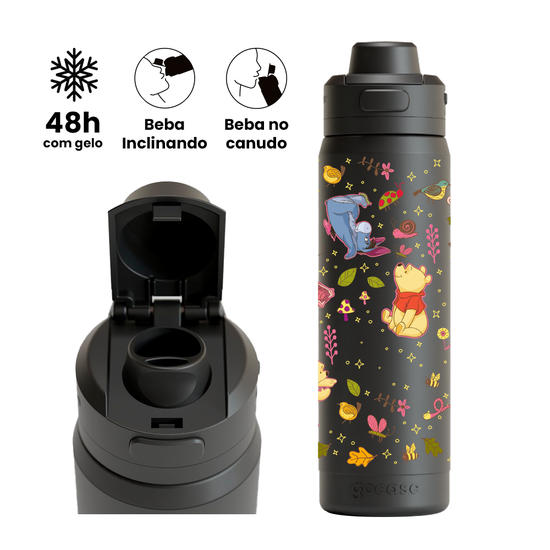 Garrafa Térmica Flip Pro + Ebook - Ursinho Pooh - Turma do Pooh Stickers