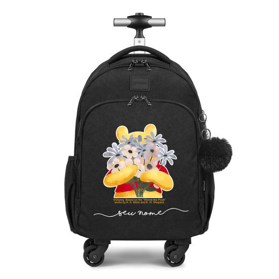 Mochila de Carrinho 4 Rodas Fun - Pooh Buquê de Flores